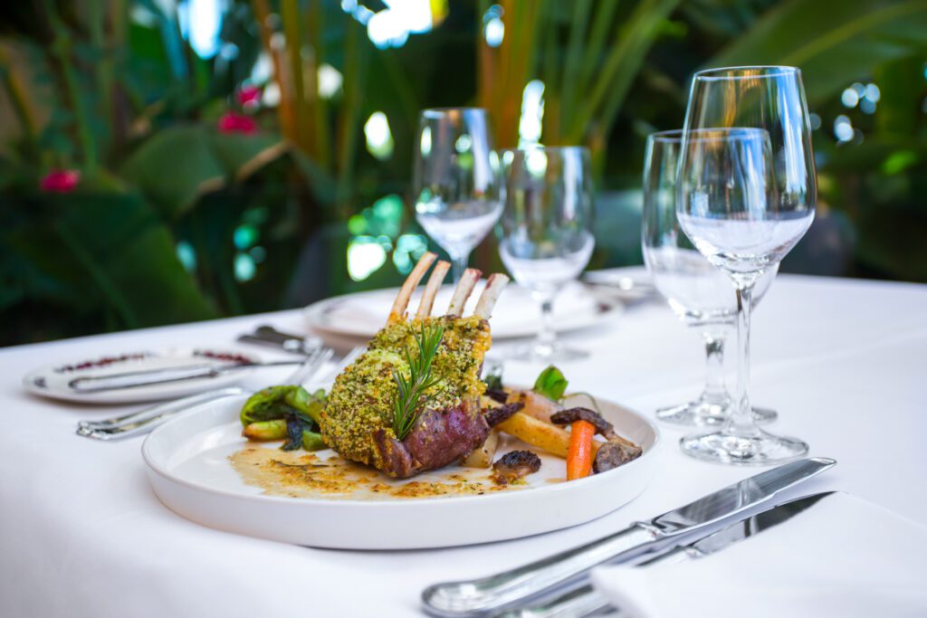Wine director Albert Lake approaches it with quiet confidence. No performance, just a few questions and a recommendation that feels instinctively right. For me, it begins with a rich white Montrachet—layered with butter, honey, and minerality—paired with a warm goat cheese tart with lavender honey and fig. The cuisine prepared by excecutive chef Dominique Thevenet is divine. Later, a Châteauneuf-du-Pape arrives, offering notes of raspberry and blackberry, paired with jerk pork tenderloin, ginger lentils, and mango salsa—an inspired balance of French technique and island flavor.