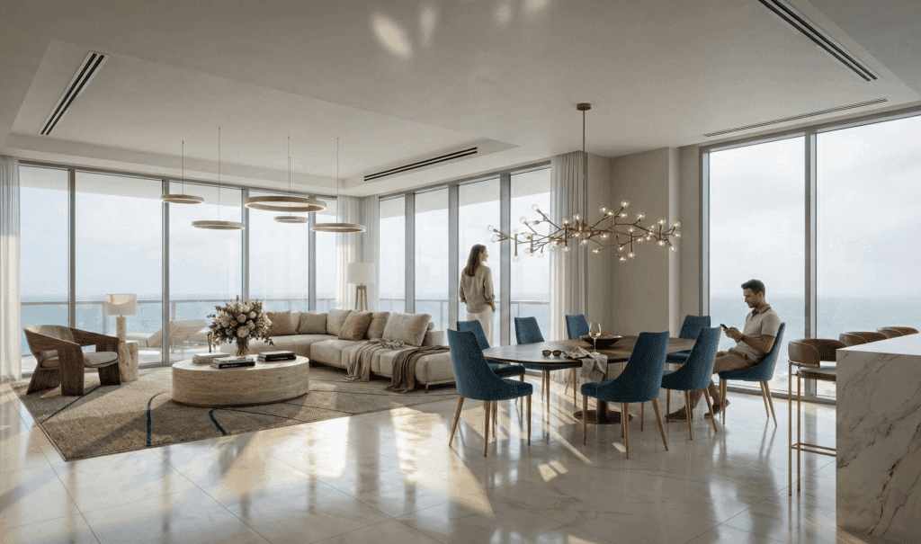 These residences are designed for those who want a world that opens in every direction: 360-degree views, and two private terraces — one facing east for sunrise over the Atlantic, the other facing west for Intracoastal and skyline views. Designer-curated finishes and expansive layouts create a daily, changing panorama that few will ever experience.