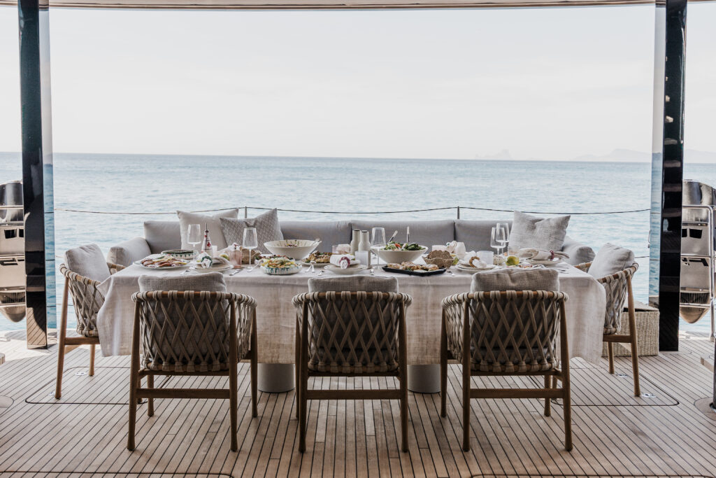 The family delighted in sharing quiet moments together, followed by leisurely afternoons spent lounging on the flybridge, soaking in the Jacuzzi, and enjoying drinks while gazing at the Mediterranean. Evenings brought al fresco dinners under the stars and cozy movie nights in the open-air cinema.