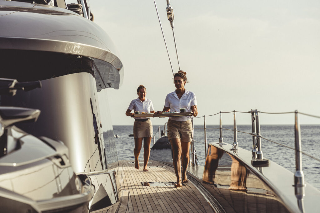 A dedicated crew of four delivers impeccable hospitality, gourmet cuisine, and expert navigation, ensuring a seamless and luxurious experience from start to finish. For those craving adventure, the 80-foot sailing yacht offers an exceptional selection of water toys, including a high-performance Jet ski, two eFoils, two Sea bobs, paddleboards, water skis, a wakeboard, and more.